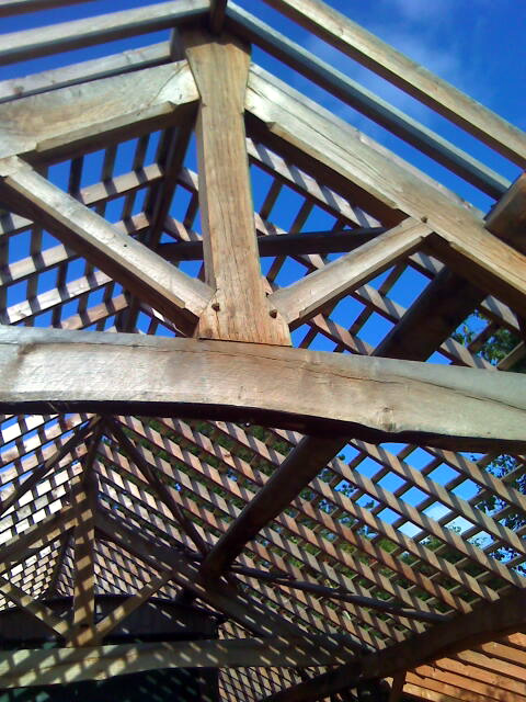 This building was designed to be constructed from oak thinnings and lower grade beam oak, from a single woodland. The woodland is now healthier due to this process, making the wainhouse a by-product of proper woodland management.